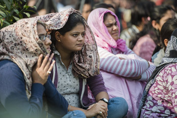 Members of the audience listening to His Holiness deliver the 11th Nehru Memorial Lecture at Jawaharlal Nehru University in New Delhi, India on November 20, 2014.
