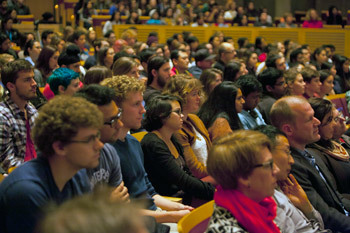 Finally, he addressed the young people in the audience directly. Conceding that the 20th century generation, to which he belongs, have created many problems on the planet, he suggested it will be up to the 21st century generation to clear them up. This is not a time to relax and take things for granted, he said. Too much self-centredness is a cause of the problem, part of the solution will be to acknowledge that our world is interdependent and to take the interests of all 7 billion human beings into account.