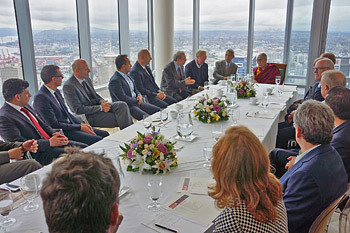 His Holiness the Dalai Lama participating in a roundtable discussion with corporate CEOs in Vancouver, Canada on October 22, 2014. Photo/Jeremy Russell/OHHDL