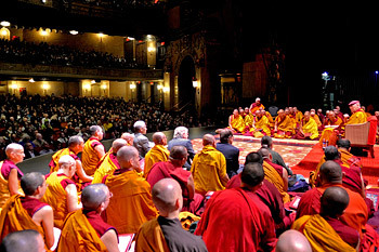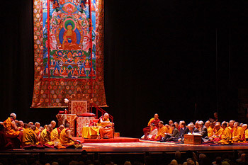 A view of the stage at the Beacon Theater during His Holiness the Dalai Lama's teachings in New York, NY, USA on November 3, 2014. Photo/Jeremy Russell/OHHDL