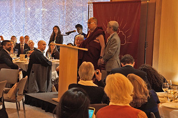His Holiness the Dalai Lama speaking at the Tibet House Art and Freedom Award luncheon in New York, NY, USA on November 3, 2014. Photo/Jeremy Russell/OHHDL