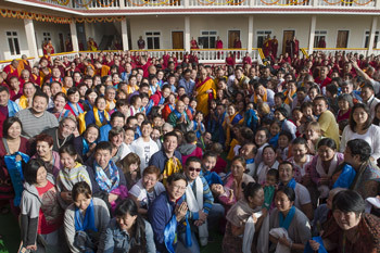 “Among the world’s religious traditions, Buddhism is distinct for its use of logical investigation,” His Holiness said. “The Nalanda tradition seems to be the most comprehensive presentation of the Buddha’s teachings available today. It incorporates knowledge of the mind and emotions that is not only of use to Mongolians and Tibetans, but is of potential benefit to all humanity, which is why many scientists are taking interest in it. However, the only way to preserve this tradition is through study and practice. You’ve come a long way to study here in India; work hard. I expect when you complete your studies some of you will stay to teach here, some of you will return home.”