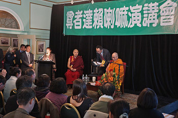 At the Carrington Hotel in another part of Katoomba His Holiness met about 100 Chinese intellectuals, writers and democracy activists. They greeted him warmly as he entered the room and he responded: