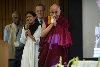 With regard to the importance of democracy, His Holiness said that even animals love freedom. He mentioned the small dog and cat that live with him, who, whenever the door is open, love to run free. It’s in this spirit that, he said, it’s really important that we use our human creativity and intelligence. Looking over the audience His Holiness observed that were hardly any delegates from Africa or from the Arab lands. He suggested they be invited in future, noting the great potential waiting to be fulfilled in Africa.