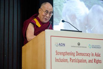 Dalai Lama a question during the conference on "Strengthening Democracy