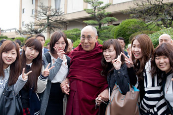 Nagoya, Japan, 7 April 2015 - This morning, His Holiness the Dalai Lama travelled from Tokyo to Nagoya by Shinkansen - ‘Bullet Train’, and drove to the campus of Aichi Gakuin University. The University’s history began as a Soto Zen training centre founded in 1876. It now offers 50,000 students education infused with a spirit of humanity derived from Soto Zen founder Dogen Zenji’s sense that study and practice should not be seen as different.
