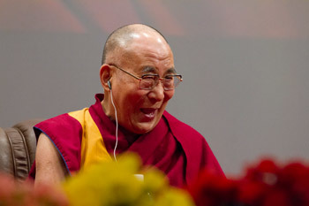 His Holiness remarked that although he had already been introduced to the audience, he would like to tell them about his three commitments. Firstly, as a human being he tries to think about the future well-being of the whole of humanity. He noted that in his lifetime, the 20th century had seen unprecedented bloodshed in which historians say 200 million died in violence. If it had produced a good result, it might have been justified. However, His Holiness suggested that even the fighting and killing that is going on today is a symptom of the past century’s negligence and mistakes. He said we need a new approach, one that does not involve the victory of one and the destruction of the other, but sees all human beings as members of one family.