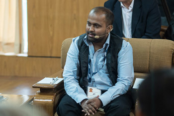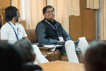 Akran Shah speaking during the second panel discussion of the AEI Symposium at His Holiness the Dalai Lama's residence in Dharamsala, HP, India on November 4, 2015.