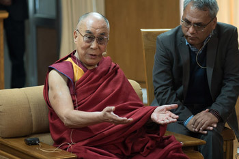 Asked for his remarks, His Holiness said that since all his knowledge derived from Indian sources and since his body had been nourished by Indian rice and dal for more than 50 years, he considers himself a son of India. He listed aspects that make India important. It is the world’s most populous democratic country. It is by and large stable and peaceful. Religious harmony prevails as it has done for centuries. The rule of law exists. In contrast, in China there are neither free media nor freedom of expression.
