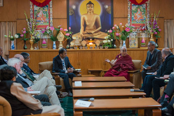 His Holiness the Dalai Lama commenting during the first panel of the second day of AEI's symposium at his residence in Dharamsala, HP, India on November 5, 2015.