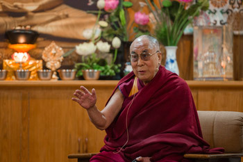 “Yes,” he replied. “There is this ancient idea of ahimsa, non-violence or not doing harm. It means that if you have the opportunity to exploit someone, but you restrain yourself, that’s ahimsa and it arises from karuna which is compassion or respect for others. If you have a bad motivation even good actions will do no good. Democracy is good but it won’t work as it should if the people involved are selfish. When there is no freedom, no freedom of speech it limits our creativity. That’s why I tell the Chinese I meet that the 1.3 billion Chinese people should be informed about reality. If they were they would have the ability to judge right from wrong. Therefore censorship is wrong. In this connection India is much freer. If we want to be realistic, we have to act according to the current reality.