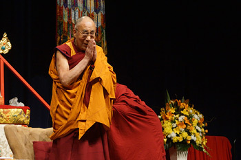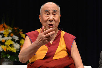 “Many of the problems we face today are our own creation. I’ve just had a good lunch and right now we’re enjoying being together in this big hall, but elsewhere in the world there are refugees, on the borders of Burma, Bangladesh and in North Africa, for example, without shelter or food. Life is precious and it’s really sad when it’s lost. It’s unthinkable that people are killing each other in the name of religion, when the message of all major religions is love.