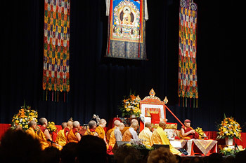 A view of the stage of the Brisbane Convention and Exhibition Centre during the final session of His Holiness the Dalai Lama's teaching in Brisbane, Queensland, Australia on June 12, 2015. Photo/Jeremy Russell/OHHDL