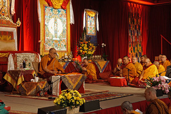Back in the teaching hall for the final session His Holiness finished explaining the Vajrabhairava sadhana, following it with a succinct account of how to engage in the completion stage practices. He concluded: