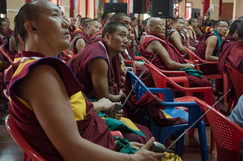 Some of the over 800 monks and nuns attending the first day of the four day Mind & Life XXX conference at Sera Monastery in Bylakuppe, Karnataka, India on December 14, 2015. Photo/Tenzin Choejor/OHHDL