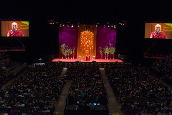 A view of the stage at the 02 Arena, venue for His Holiness the Dalai Lama's talk in London, England on September 19, 2015. Photo/Ian Cumming