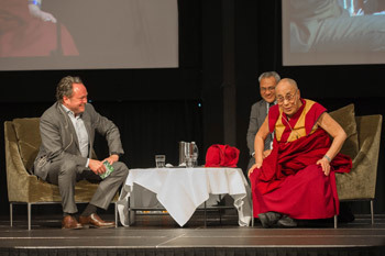His Holiness the Dalai Lama answering questions during is talk at the International Student Festival in Trondheim (ISFiT) in Trondheim, Norway on February 9, 2015. Photo/foto.samfundet.no