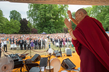His Holiness the Dalai Lama speaking at Wiesbaden Kupark in Wiesbaden, Hessen, Germany on July 12, 2015.