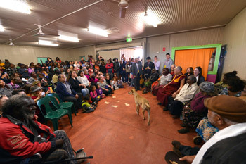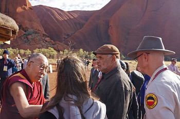 His Holiness the Dalai Lama visiting with the Mutitjulu community in Uluru, Northern Territory, Australia on June 13, 2015. Photo/Rusty Stewart