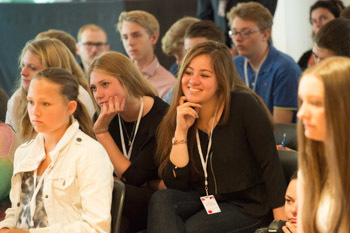 Students listening to His Holiness the Dalai Lama answering their questions at the Museum of Applied Art in Frankfurt, Germany on July 13, 2015. Photo/Manuel Bauer