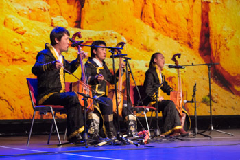 Musicians from Mongolia performing at celebrations in honor of His Holiness the Dalai Lama's 80th birthday at the Jahrhunderthalle in Frankfurt, Germany on July 13, 2015. Photo/Manuel Bauer