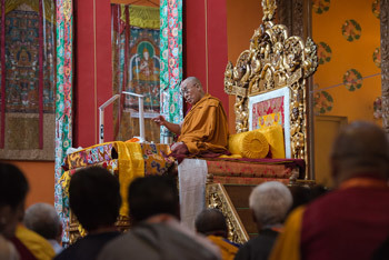 His Holiness the Dalai Lama teaching at Tashi Lhunpo Monastery in Bylakuppe, Karnataka, India on December 19, 2015. Photo/Tenzin Choejor/OHHDL