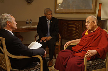 Dallas, Texas, USA, 2 July 2015 - In addition to holding a string of private meetings, His Holiness the Dalai Lama was interviewed this morning by Edgardo Del Villar, who is a news anchor for Telemundo, the largest Spanish TV channel in the USA. He began by noting that His Holiness turns 80 early next week and asked, “Who are you?” The direct reply was:
