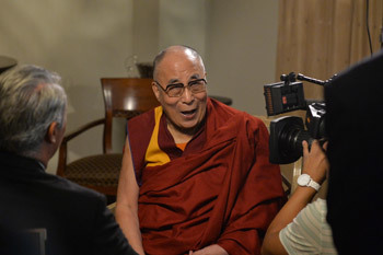 His Holiness the Dalai Lama being interviewed by Edgardo Del Villar of Telemundo in Dallas, Texas, USA on July 2, 2015. Photo/Sonam Zoksang