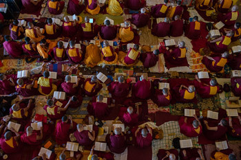 Some of the over 22,000 monks and nuns attending His Holiness the Dalai Lama's Lam Rim Teaching at Tashi Lhunpo Monastery in Bylakuppe, Karnataka, India on December 23, 2015. Photo/Tenzin Choejor/OHHDL