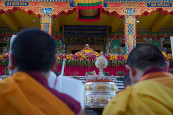 The Chant Master led another rousing rendition of the Lam Rim Dedication prayer and when that was complete, His Holiness prompted him to recite the Words of Truth, which ends: