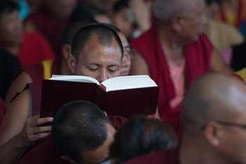 His Holiness steadily read the text as it made its way through thickets of definitive and provisional views culminating, just before he broke for lunch, with his reading,