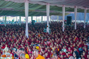 Some of the more that 31,000 people, mostly monks and nuns, attending His Holiness the Dalai Lama's Lam Rim Teaching at Tashi Lhunpo Monastery in Bylakuppe, Karnataka, India on December 27, 2015. Photo/Tenzin Choejor/OHHDL