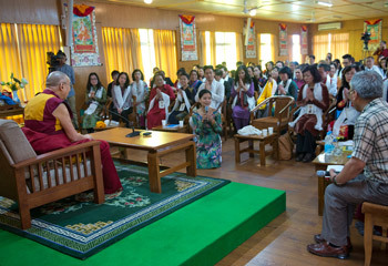 The first of several questions from the audience asked how we can see our minds in order to change them. His Holiness explained: