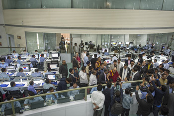 Surat, Gujarat, India, 1 January 2015 - Early this morning, His Holiness the Dalai Lama took a one hour flight from Pune to Surat on the Gujarat coast. He was the guest of Govind Dholakia a successful entrepreneur in the diamond business. His Holiness was welcomed by members of the reception committee at Surat airport and then drove directly to the new quarters of Shree Ramkrishna Exports. Mr Dholakia showed him around his company’s new premises, an environmentally friendly building where they process diamonds with state of the art technology.
