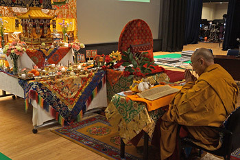 He praised the Nalanda tradition’s rigorous approach to knowledge. He recommended reading and listening to explanations, thinking about what you have read or heard to gain conviction in it and then familiarizing yourself with what you have understood in meditation. He stressed the importance of study and analysis, pointing out that simply reciting the name of Amitabha is not enough.