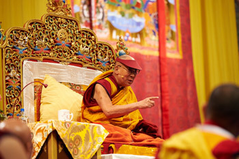 His Holiness announced that he would conduct the ceremony for generating the awakening mind tomorrow in conjunction with an Avalokiteshvara empowerment. The empowerment comes from the collection of secret visions of the 5th Dalai Lama.