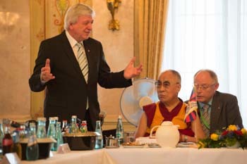 His Holiness the Dalai Lama speaking at City Hall in Wiesbaden, Hesse, Germany on July 14, 2015. Photo/Manuel Bauer