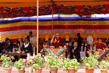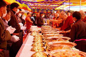 Leh, Ladakh, J&K, India, 24 August 2016 - On the final day of His Holiness the Dalai Lama’s visit to Ladakh this year, the Ladakh Buddhist Association (LBA) offered a lunch in his honour in an ornate tent erected on the Shiwatsel ground where he had recently given teachings. Senior members of all Ladakh’s Buddhist traditions, Ganden Tri Rinpoche Rizong Rinpoche and Thiksey Rinpoche among them, Council Members of LADHC, including Dr Sonam Dawa (CEC, LADHC), Jora Rigzin (MLA, J & K State) and other dignitaries attended.