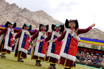 Ladakhi women performing traditional dance at the luncheon in honor of His Holiness the Dalai Lama in Leh, Ladakh, J&K, India on August 24, 2016. Photo by Tenzin Choejor/OHHDL