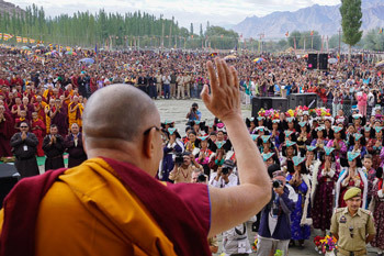 Leh, Ladakh, J&K, India, 18 & 19 August 2016 (from news reports) - Almost thirty thousand devotees thronged the Shiwatsel ground to attend teachings by His Holiness the Dalai Lama here today. Four days of teachings, with sessions in the mornings only, have been organized by the Ladakh Buddhist Association of Leh in collaboration with various volunteer organizations.