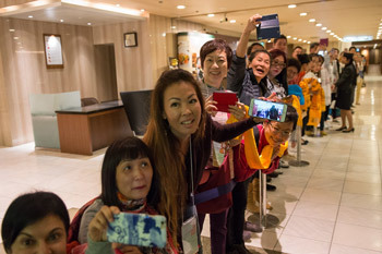 Osaka, Japan, 10 May 2016 - As His Holiness the Dalai Lama walked to the hall of the Osaka International Conference Center this morning, well-wishers, mostly Chinese from Taiwan, lined up to greet him. When he walked onto the stage, the hall filled with applause. Once he had sat down he said: