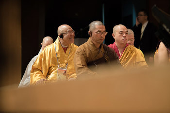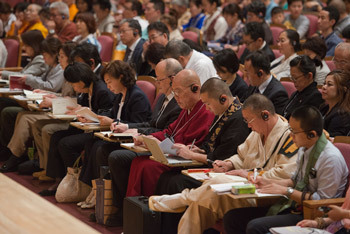 Members of the monastic community listening to His Holiness the Dalai Lama's teaching in Osaka, Japan on May 10, 2016. Photo/Tenzin Choejor/OHHDL