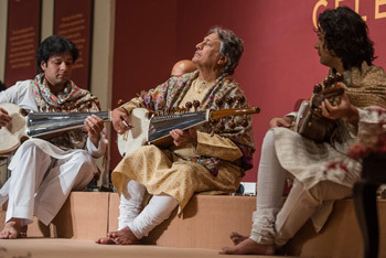 Sarod virtuoso, Ustad Amjad Ali Khan and his sons performing at the "Celebrating His Holiness" event in New Delhi, India on January 4, 2016.