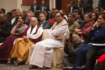 Members of the audience listening to His Holiness the Dalai Lama speaking at the "Celebrating His Holiness" event in New Delhi, India on January 4, 2016. Photo/Tenzin Choejor/OHHDL