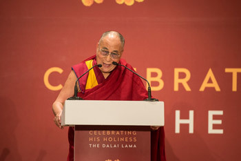| His Holiness the Dalai Lama addressing the audience