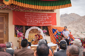 His Holiness the Dalai Lama speaking during the Conference on Thonmi Sambhota at Zandok Palri Monastery in Ladakh, J&K, India on August 7, 2016. Photo/Tenzin Choejor/OHHDL