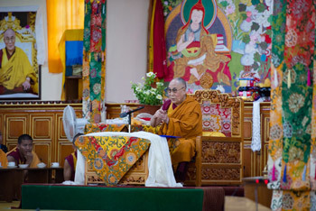 His Holiness the Dalai Lama speaking during the graduation ceremony at the College for Higher Tibetan Studies (CHTS) at Sarah in Dharamsala, HP, India on April 26, 2016.