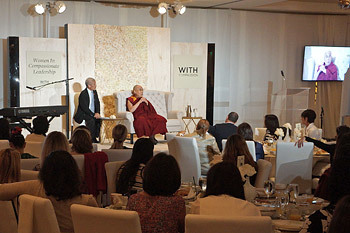 His Holiness the Dalai Lama at the "Women in Compassionate Leadership" breakfast in Los Angeles, California on June 17, 2016. Photo/Jeremy Russell/OHHDL