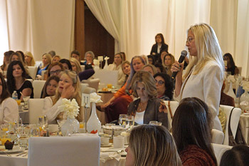 As His Holiness entered the room where the breakfast was being held, about 275 people, among them influential women, CEOs, entertainers and media representatives, were already seated at tables. A brisk video depicting His Holiness’s life and activities was shown by way of introduction. Mimi and Maribel Unanue told how moved they had been to visit His Holiness in Dharamsala. They thanked him for encouraging women to take up compassionate leadership roles. First Lady of Anaheim, the Mayor’s wife, Julie Tait, asked the gathering to welcome His Holiness and he took his seat on the stage.