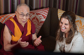His Holiness the Dalai Lama with Maria Schriver during their live interview broadcast on Facebook in Los Angeles, California on June 17, 2016. Photo/Jeremy Russell/OHHDL